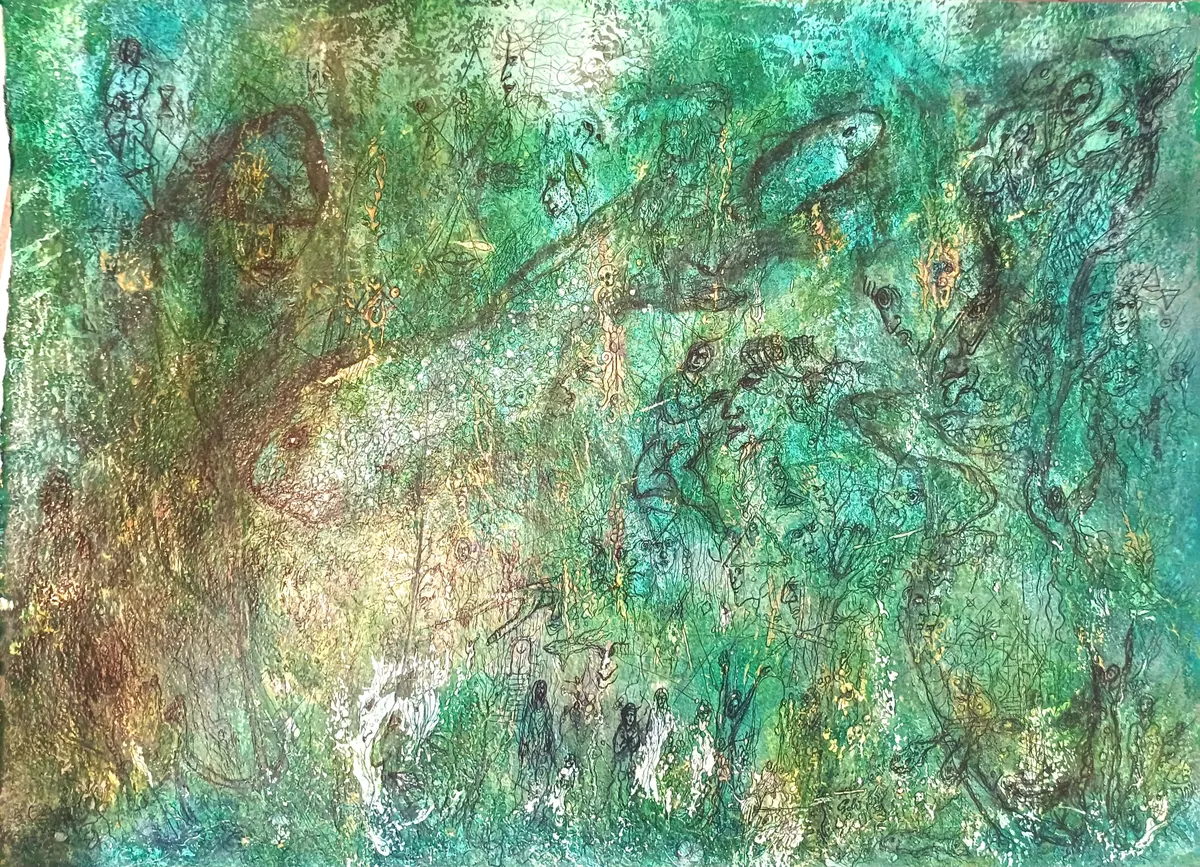 Orginalen er 77x56cm på 350grams papir. Ink and acrylic 23