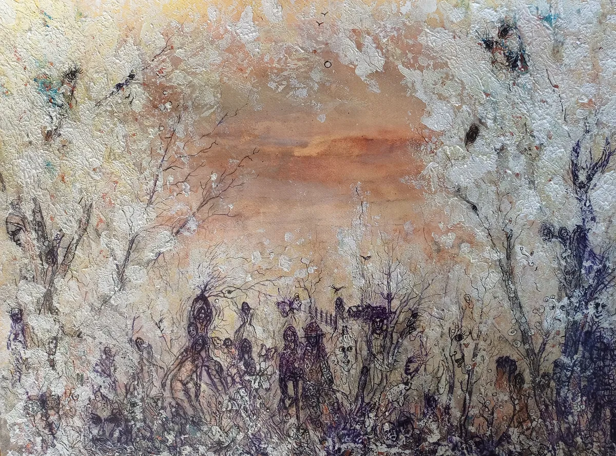Str 77x56cm på 350grams papir. Akryl og blekk. Her orginalen uten innramming